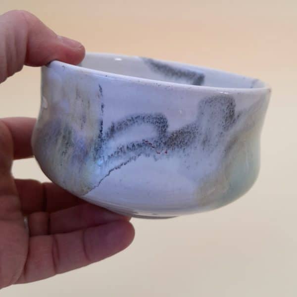 Chaque pièce de la collection “Magnifiques” est tournée à la main sur un tour de potier. Les émaux appliqués en superposition s’écoulent délicatement, créant des motifs flous et subtils, plus évocateurs que figuratifs et absolument uniques. La forme est inspirée de mon amour pour les chawans coréens.
